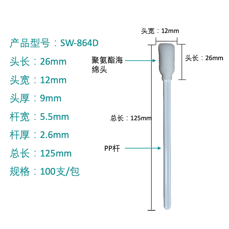 - Roghnaigh an cineál swab de réir iarratais tionscail agus íogaireacht dromchla.