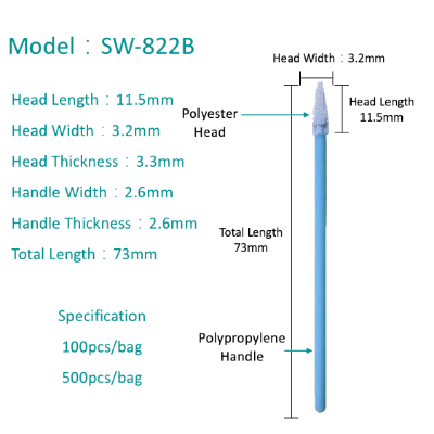 Airíonna uathúla na Swabs glantacháin beachtais ard le leideanna cúir Déan iad fíor -riachtanach ar fud na dtionscal éagsúla ina bhfuil rialú éillithe agus sláine dromchla ríthábhachtach. Leis an gcumas atá acu cloí le topagrafaíocht dromchla micreascópach agus sláine struchtúrach á gcothabháil ag an am céanna, leagann siad amach iad seachas uirlisí glantacháin traidisiúnta.